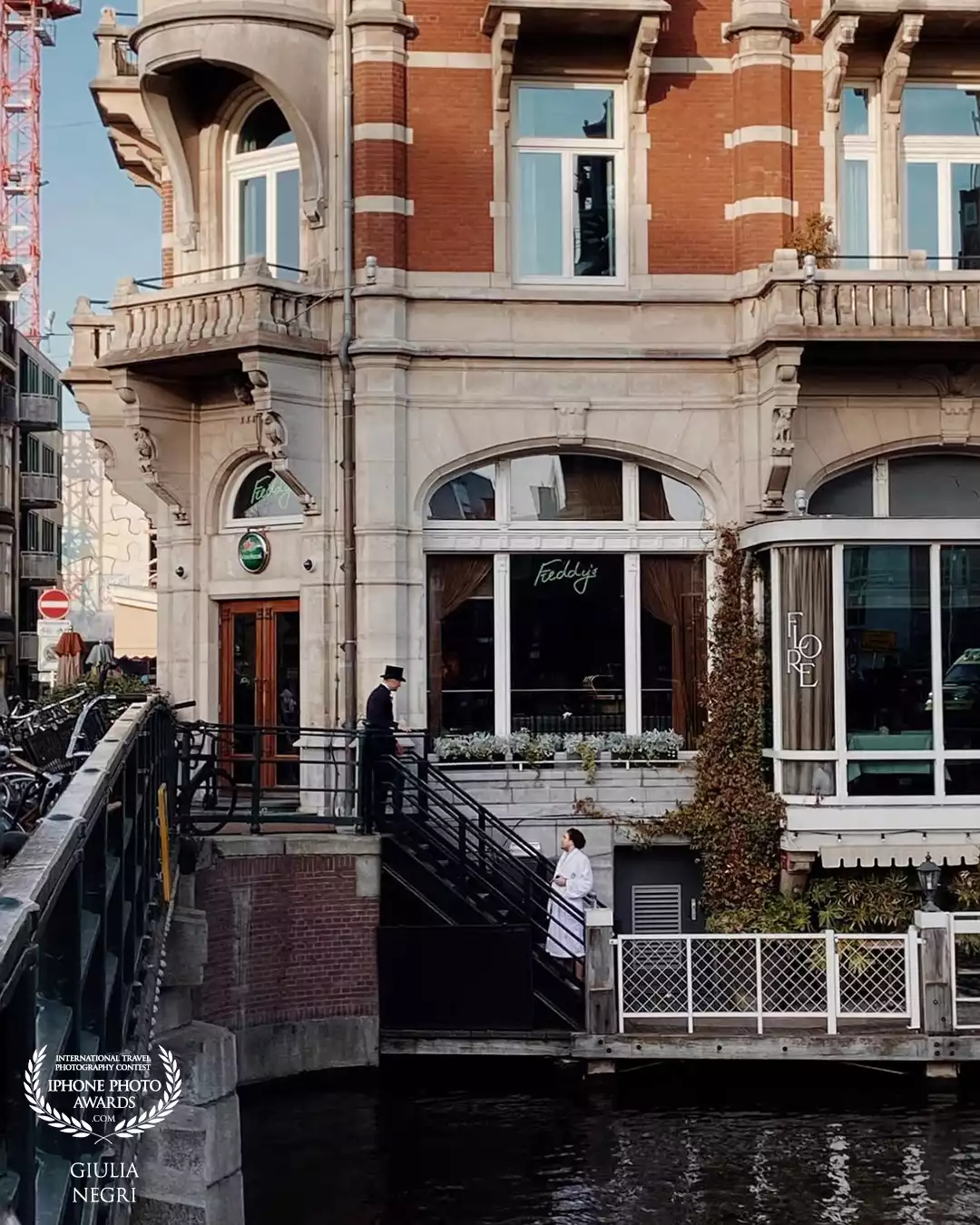 In front of the Hotel the L’Europe, in the very city center of Amsterdam, a butler assists a guest coming from the breakfast terrace in his robe. Although eye-catching, the scene didn’t turn many heads among the lines of Amsterdammers cycling to work, used as they are to see people wearing the most unusual outfits in the streets of the capital.