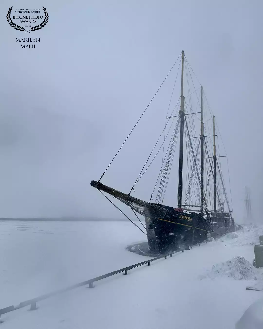 A snowstorm day, -30ยฐC, shivering hands but nothing could stop me from taking this pic of my favourite neighbourhood boat! Such a beautiful scene.