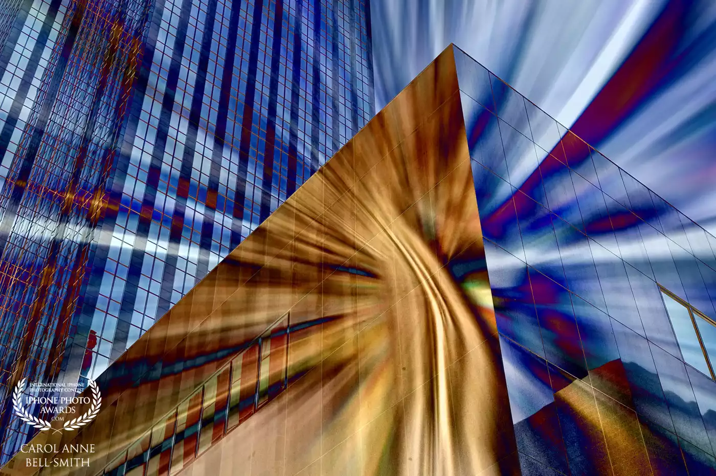 This multiple exposure image was taken downtown Toronto. One image is of Toronto Metropolitan University and another is of a Toronto skyscraper. Sunset produces the most incredible reflections that bounce between the buildings to create magic!