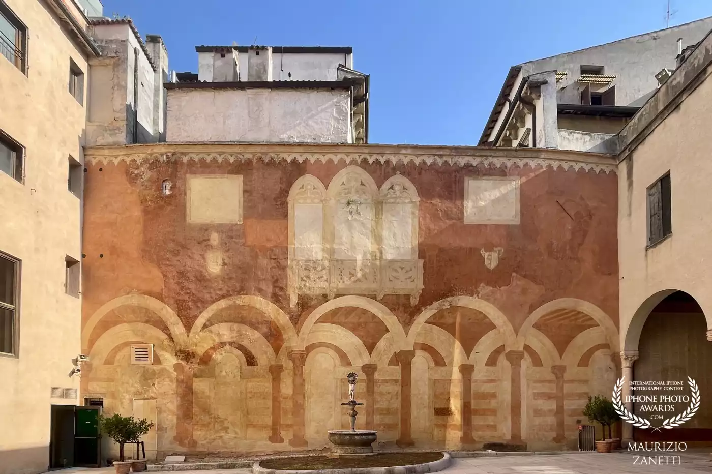 Palazzo Forti, in the heart of Verona, is a treasure trove of architecture that has been layered and layered over the centuries, undergoing extensive and excellent restoration work. Pictured is the neo-Gothic trompe-l'oeil fresco in the courtyard, created in the mid-19th century.