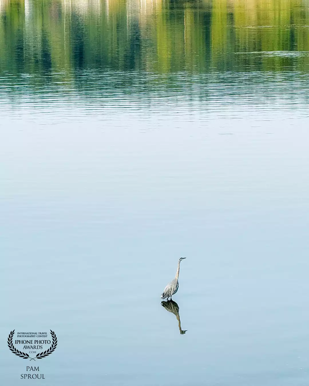 This beautiful mirror like sea with the blue heron and the foreground was so like an oil painting