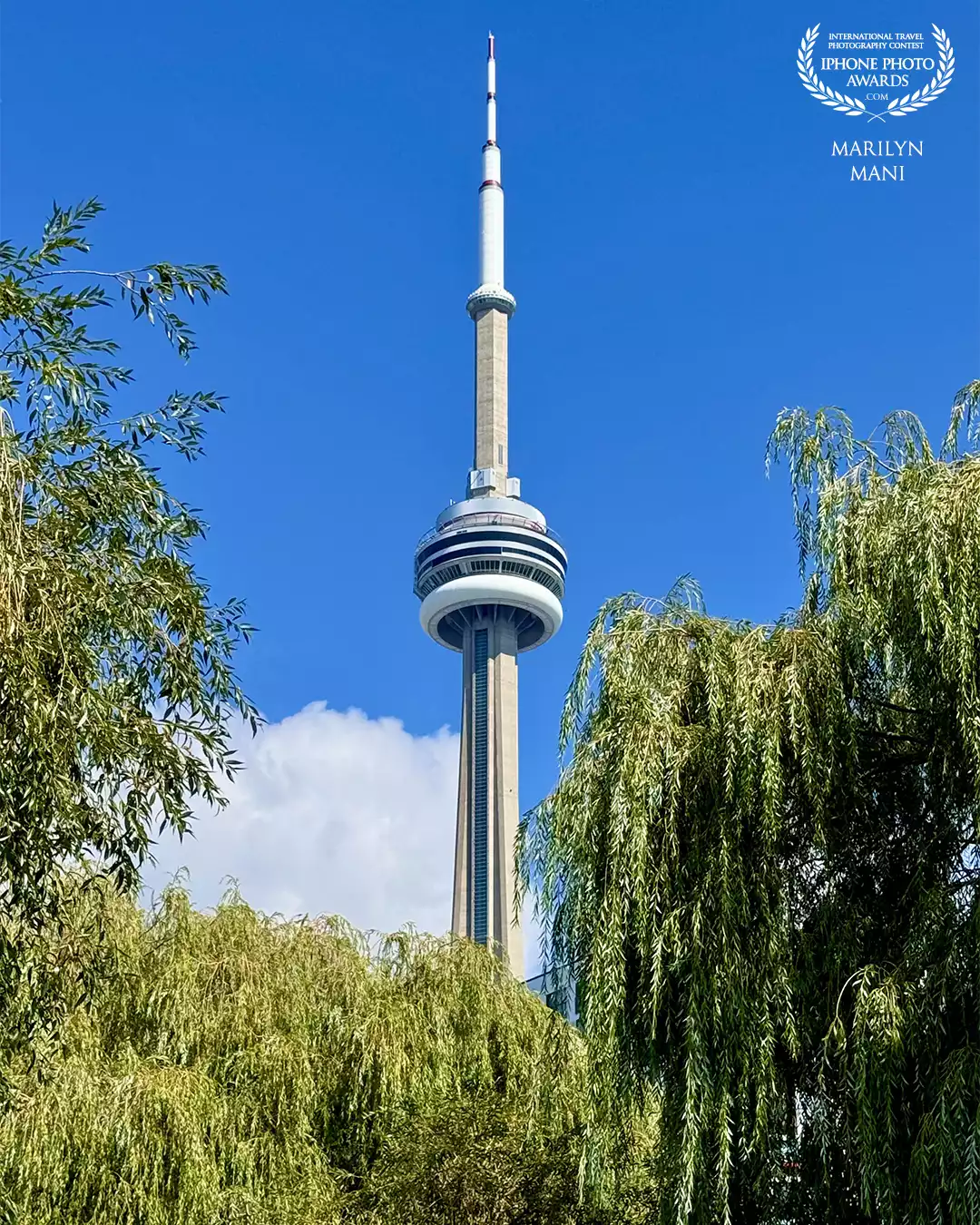 The CN tower in all its glory on a beautiful day! The gorgeous colours of the trees against the blue sky all supporting the CN tower for the perfect shot!