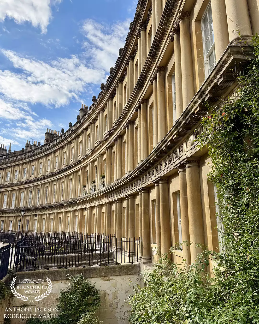 98th CollectionA striking view of The Circus in Bath, England, showcasing its elegant Georgian architecture and curved facade against a bright blue sky.