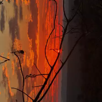 88th CollectionDaybreak & sunrise at Port Douglas, Queensland, Australia with an old palm frond in the sand creating a silhouette.